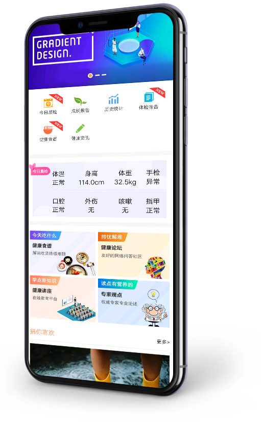 綁定家長手機(jī)號,進(jìn)入晨檢系統(tǒng)。更加方便的了解兒童健康狀況,及時(shí)預(yù)防兒童傳播性疾病,讓孩子更加健康茁壯成長!